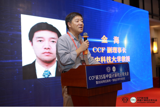 本次大会共有6场大会特邀报告,6场论坛特邀报告,4场线上论坛。12位专家和4位论坛主席分别围绕“区块链”、“支撑智能应用的基础软件”、“人工智能”、“大数据”、“机器学习”、“网络通信及安全”等前沿技术在各个领域的应用进行报告,共同探讨计算机应用的发展与未来。金海做了题为《从分布式系统的发展看区块链技术面临的挑战》的特邀报告,他从分布式系统技术的发展演进探讨区块链作为分布式系统新形态所带来的新挑战,同时也展望了区块链技术发展的未来走向。北京大学的谢涛做了题为《支撑智能应用的基础软件更新》的特邀报告,他从软件工程和系统软件视角来讨论支撑智能应用的基础软件更新。此外清华大学的刘云浩做了《智能+与工业互联网》、西安电子科技大学的胡瑞敏做了《大数据时代安全演进与网络空间社会安全感知计算》、中国科公司信息工程研究所的熊刚做了《大数据网络行为分析:挑战与探索》、阿里安全知识服务团队的黄龙涛做了《安全和AI技术的实践与思考》的精彩报告;在智慧农林和智慧交通的大会论坛上,中国林科院资源信息所张旭、东北林业大学的景维鹏、华中农业大学的李国良、北京交通大学的李浥东、国家智能网联汽车质量监督检验中心(湖北)的周正、西安理工大学的魏嵬等六位专家也分别做了报告。