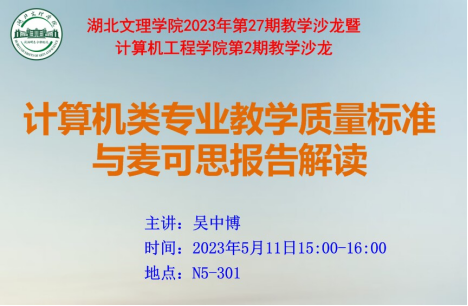 (william威廉中文官网 教工通讯员 周洁)5月11日下午,william威廉中文官网在N5-301举办2023年第2期教学沙龙:计算机类专业教学质量标准与麦可思报告解读。此次活动由党委书记曹德勇主持,教学副经理吴中博主讲。全体教师参加了此次活动。