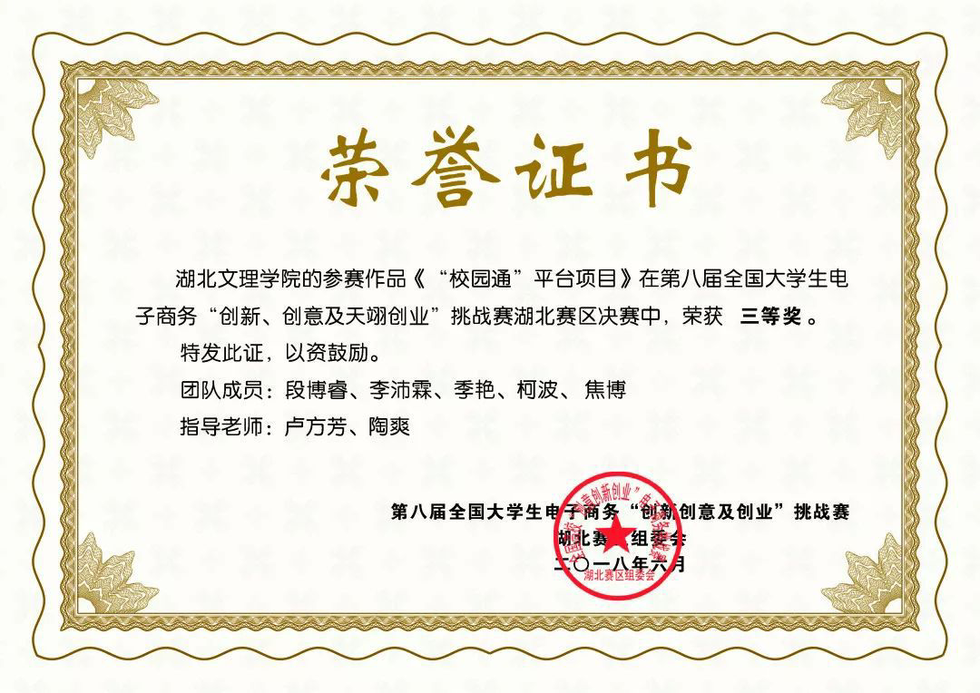 他还积极参加各项学科竞赛和创新创业活动,在校期间参加的竞赛项目荣获省级特等奖一项、省级三等奖一项、校级创新创业类项目两项等。