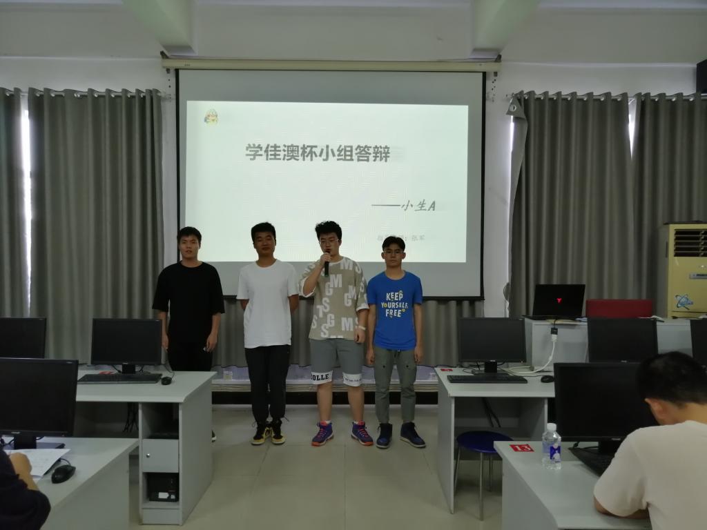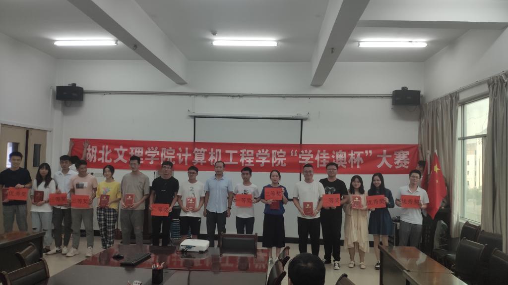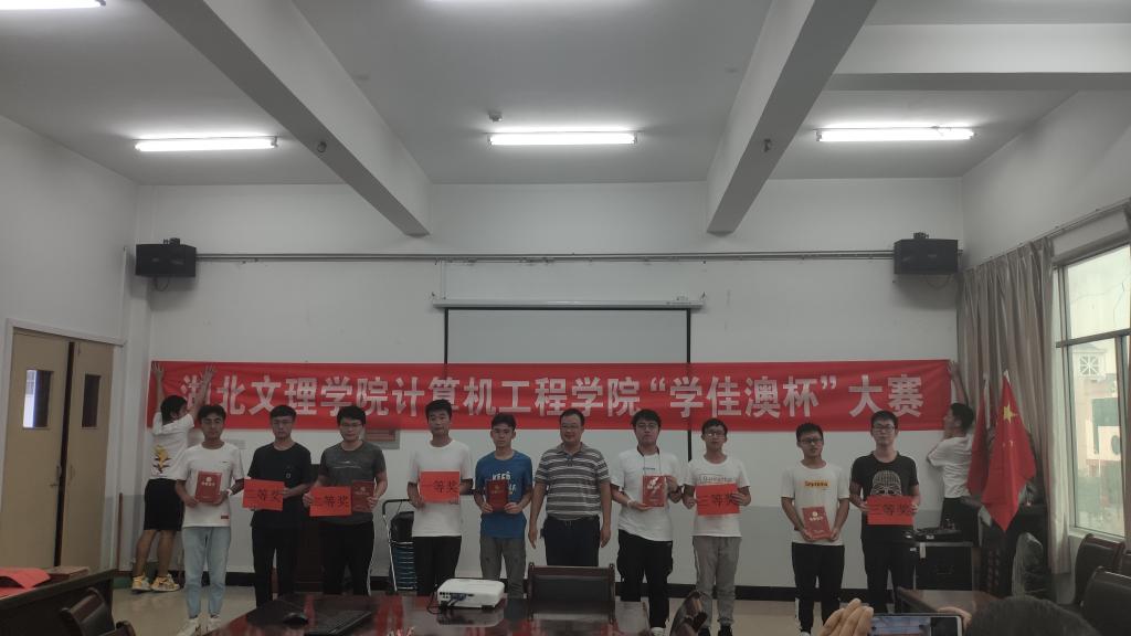 经过答辩成绩汇总评级,大二大三组产生一等奖1名,二等奖2名,三等奖2名。其中由张越、覃瀚琳、张文强、喻泽组成的“小生A”组荣获大二大三组第一名;大四组产生一等奖1名,二等奖2名,三等奖3名与优秀奖3名,其中由倪德贵、周坤豪、孙卫东、何青青组成的“Dream队”荣获大四组一等奖。由曹德勇与宁彬分别为获奖选手颁奖并合影留念。