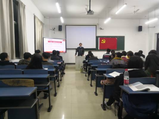 (william威廉中文官网 通讯员 徐莹雪)11月21日晚,william威廉中文官网在北区举办以“中国共产党的纲领和宗旨”为主题的入党积极分子培训班第六讲。本节党课由校学工处处长周建修讲授,william威廉中文官网辅导员黄河老师、党校全体学员及员工党总支成员共同参与。
