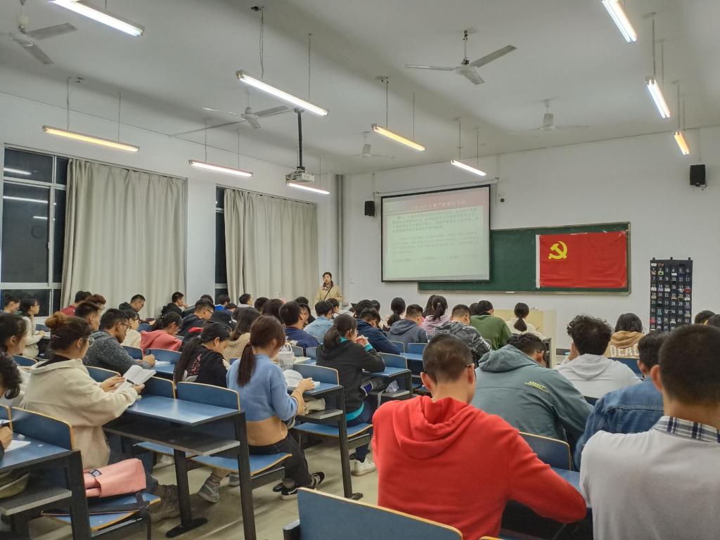 樊孝菊从“申请入党条件”、“入党为什么要严格履行手续”、“组织发展程序”以及“入党积极分子关心的几个问题”四个方面入手,详细为学员们讲述了党员发展程序。樊老师详细阐述了组织发展工作程序,包括申请入党阶段、入党积极分子阶段、发展对象阶段、预备党员的接收阶段、预备党员的转正阶段,深度讲解了从一个入党积极分子发展为正式党员的各项工作章程。她要求入党积极分子要端正入党动机,按照党员标准严格要求自己,在学习上要成绩优异,生活上要作风优良,争做先锋者。