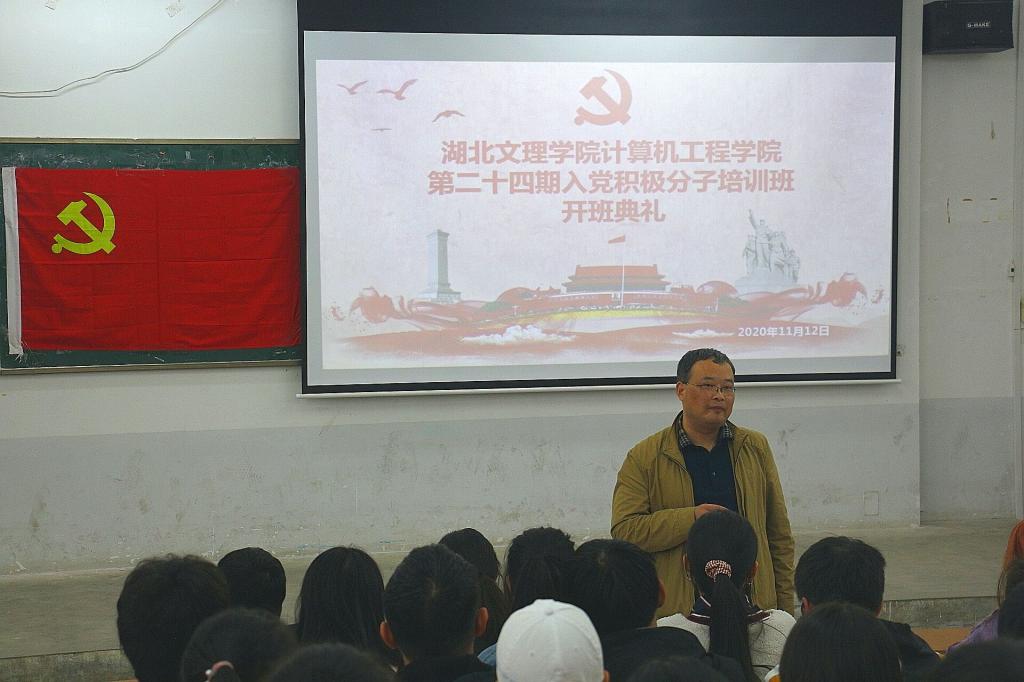 (通讯员 于耀光)11月12日晚,计算机工程公司在北区举行了第二十四期入党积极分子培训班开班典礼。本次活动由员工党总支副书记助理乔博春主持,党委书记曹德勇、党委副书记李小华辅导员童晓芳、张闪、员工党员、本期党校学员以及员工党总支全体成员共同参与。