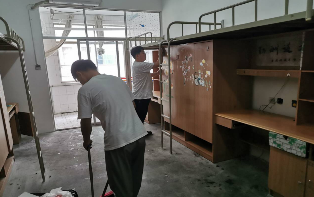 所有的员工党员认真地清扫着每一个墙角,细致地擦拭着每一处旮旯,他们还仔细查看了寝室的各种设施,好像即将入住的就是他们的弟弟妹妹一样。汗水淌下来,擦擦继续干;衣服汗湿了,用手当扇子扇一扇......没有一个人叫苦叫累。通过员工党员们的努力,新生们在入住时一定能够感受到来自学姐学长们浓浓的关爱和关心。