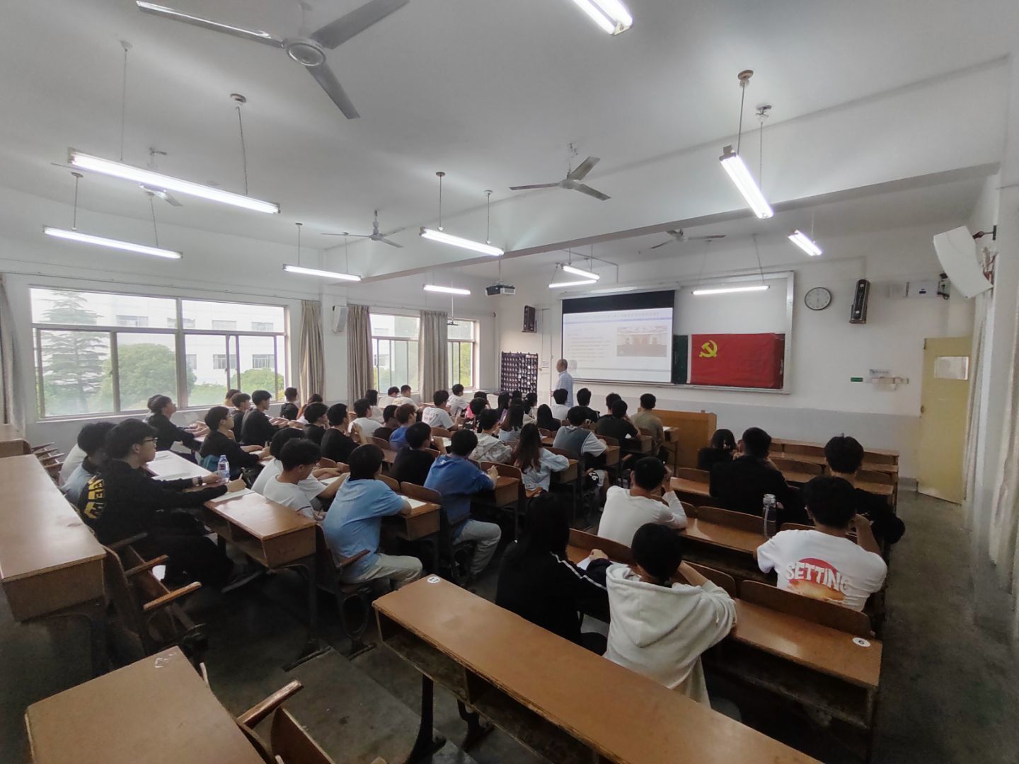 徐超以“以梦为马,不负韶华”为主题,围绕着“中国共产党的百年辉煌”带着同学们回首百年前,从1921年中国共产党的成立,国难当头,先辈们怀着“救国”的理想,为旧中国摸索出了新出路。到如今进入中国特色社会主义新时代的艰辛历程。让学员们明白了中国共产党过去的这一百年是“矢志践行初心使命的一百年,是筚路蓝缕奠基立业的一百年,是创造辉煌开辟未来的一百年”。随后,徐超向同学们分析了“中国特色社会主义新时代的历史性成就和历史性变革”,让同学们深刻领会这个变革,引导全体学员干部坚定信心,再接再厉,把党的基本理论、路线、方针和政策坚持好、贯彻好、发展好,更好续写华夏发展新篇章。最后,徐超告诫学员们不能忘记红色政权是怎么来的,新中国是怎么来的,今天的幸福生活是怎么来的,并对同学们提出了“不负韶华、不负时代、不负人民”的期望,希望同学们进一步增强思想自觉、政治自觉、行动自觉,推动学习贯彻走深走实,聚焦我们正在做的事情,提升能力,为祖国添砖加瓦积蓄力量。