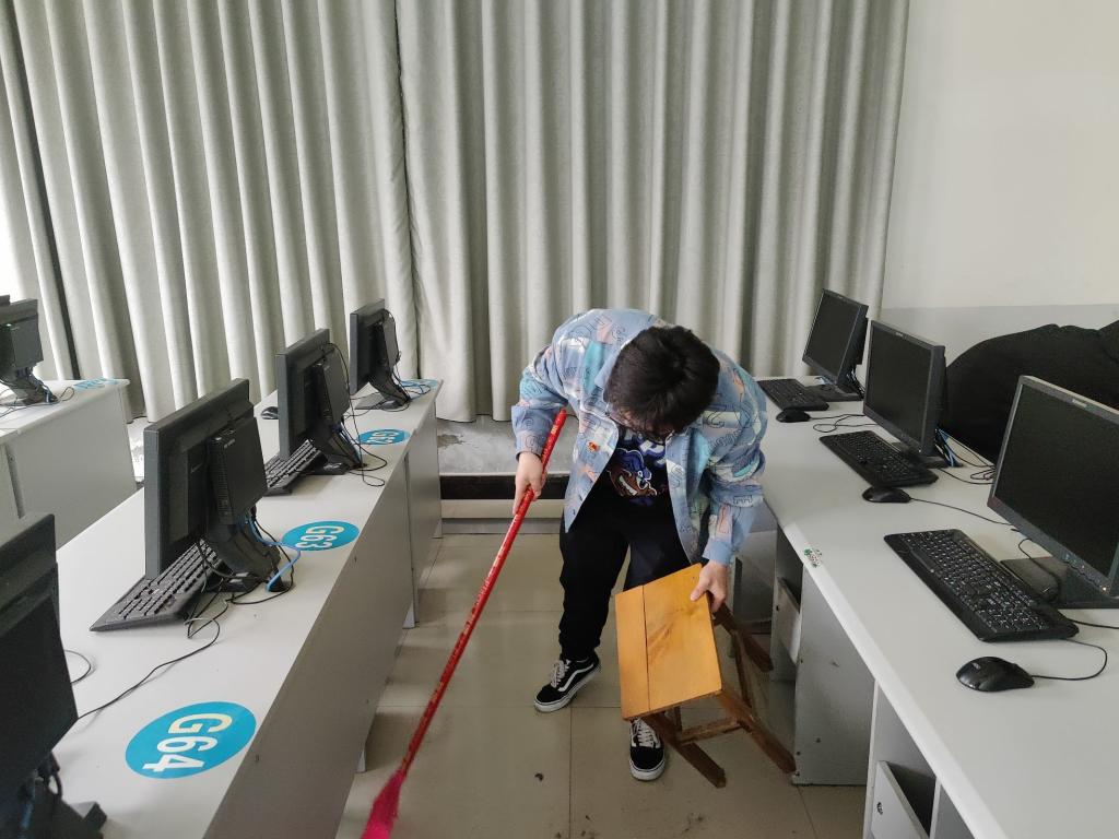 党员们化身为“校园美容师”,撸起袖子、拾起工具,迅速开始打扫教室。提水、拖地、擦桌子......党员认真仔细地打扫教室的每个角落,确保不留死角。