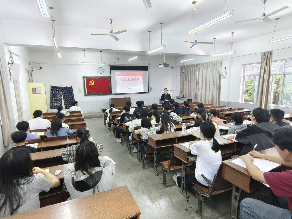 课程伊始,李小华分别从“申请入党的条件”、“入党积极分子的确定和培养教育”、“发展对象的确定和考察”、“预备党员的接收”、“预备期的培养与考察”、“组织发展工作重要事项”、“入党积极分子关心的几个问题”等七个方面详细介绍了发展党员的工作流程和要求。首先,李小华向学员们说明了党员发展是一个长期且严肃的过程,要求学员们在自己的日常生活中要注意言行举止、端正态度、严于律己,起到先锋模范作用。接着,李老师为学员们梳理了从成为入党积极分子到正式成员的详细步骤,李老师指出严格履行党的发展流程是为了保证党员质量,保证党员队伍的先进性和纯洁性。随后,李老师强调要端正入党动机,坚定理想信念,加强党性训练,尽职尽责,肩负起为人民服务的责任。