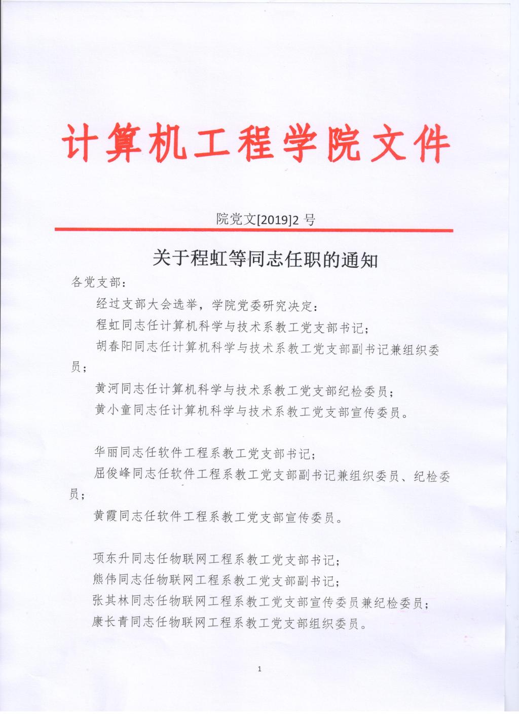 关于程虹等同志任职的通知