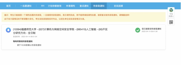 考研初试结果不是特别理想,与一志愿公司相差4分,但是付奇强并没有放弃,仍然积极准备调剂,收集调剂信息。微信公众号,公司研究生官网,科研院所官网,付奇强浏览了很多信息,最终挑选出三个心仪的公司。调剂过程中时机很重要,所以要具备信息搜集能力和决策能力,正确的选择加上充分的信息收集,调剂成功的概率才会大大增加。